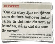 On du utnyttjar en tjänst som du inte behöver betala för är det inte du som är kunden, då är det du som är varan.