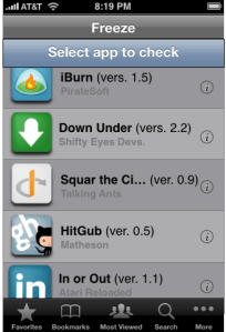 Freeze is really simple to use. First, you select the suspicious app from a list of installed apps on your phone: