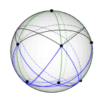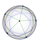The central vertex of the 2D drawing sits at the top of the sphere; the pentagram-like group of 5 vertices sit slightly above the equator, and the last five vertices (placed no the outer rim in the 2D drawing) are on the southern hemisphere. It turns out that in this embedding, the unit vectors defined by these points are at internal angles of more than 120 degrees, so the embedding describes a vector 3-colouring in the sense of [David R. Karger, Rajeev Motwani, Madhu Sudan: Approximate Graph Coloring by Semidefinite Programming. J. ACM 45(2): 246-265 (1998)]. This shows that the Grötzsch graph (which is 4-chromatic) can be vector 3-coloured.