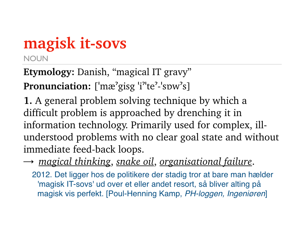 […] politicians who still think that you can just drench a problem domain in “magical IT gravy” and then things become perfect.