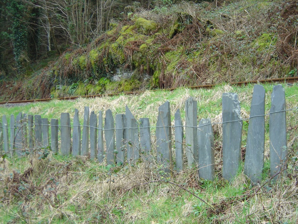 Typical slate fencing on the Talyllyn Railway, Wales, Wikimedia Commons, Public Domain.