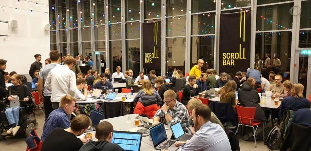 Will Code for Drinks @ ScrollBar 2018 in full activity. Photo by Troels Lund.